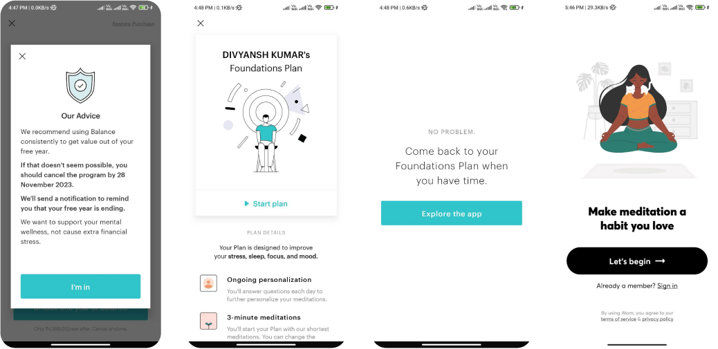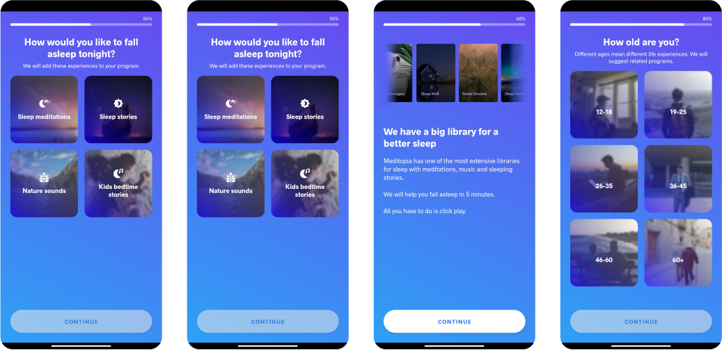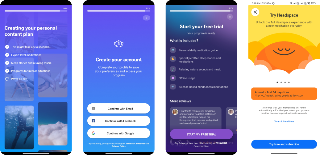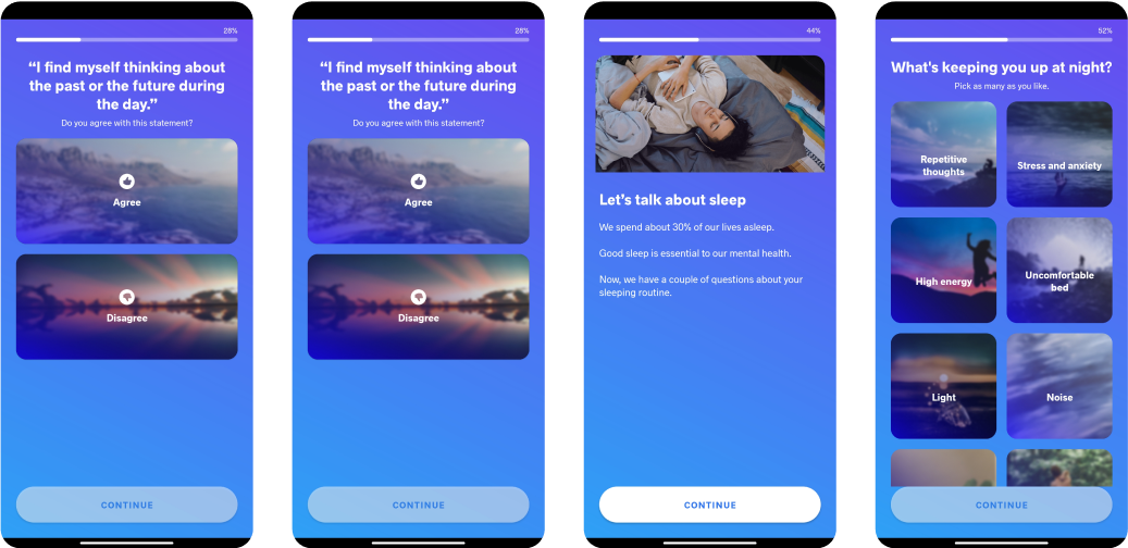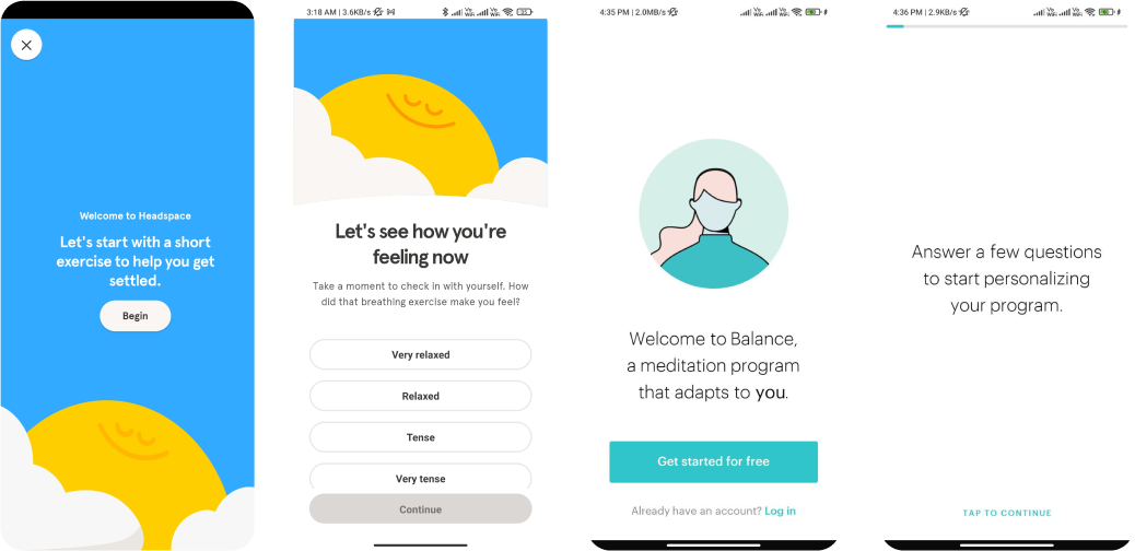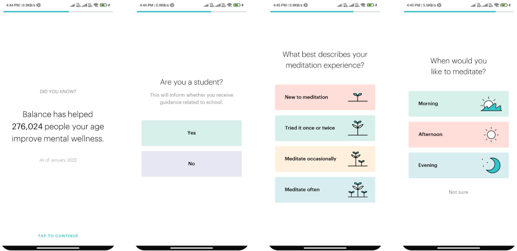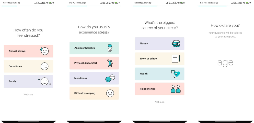One day at the middle of the night around 2 pm I couldn’t sleep so downloaded a meditation app which started with a splash screen than a around 18 questions long survey